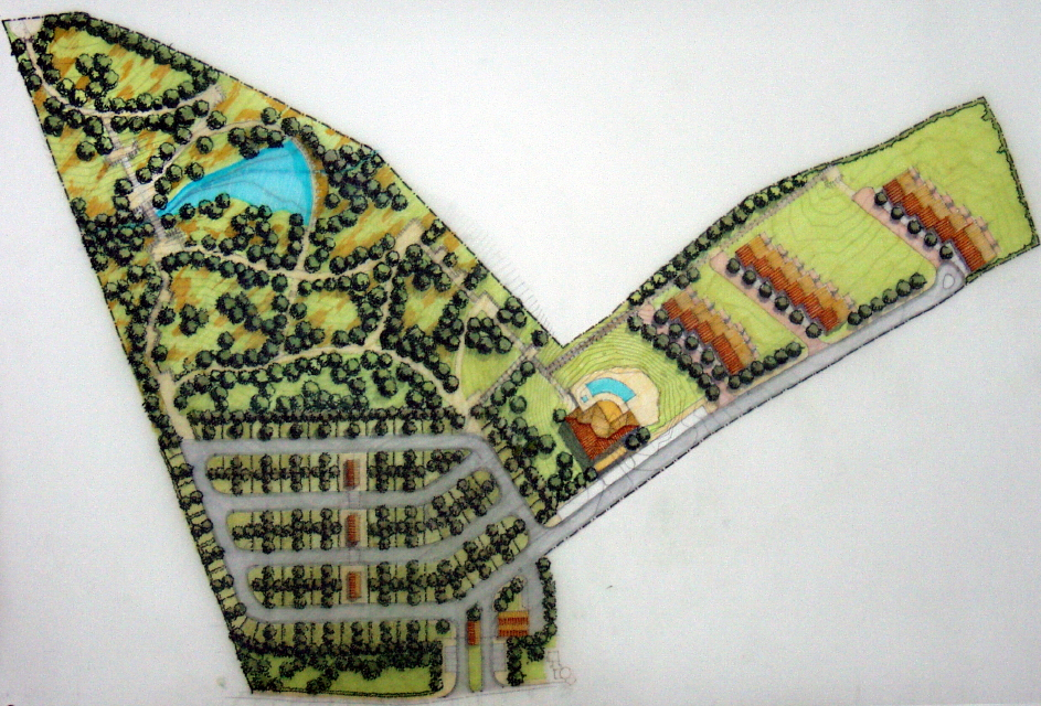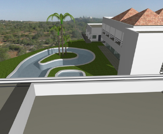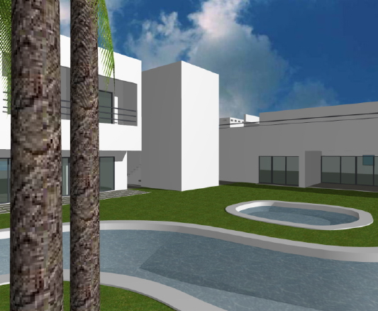 Na zona sul da propriedade, a qual apresenta um declive suave, serão implantados três conjuntos de edifícios em banda, totalizando 40 unidades de alojamento.