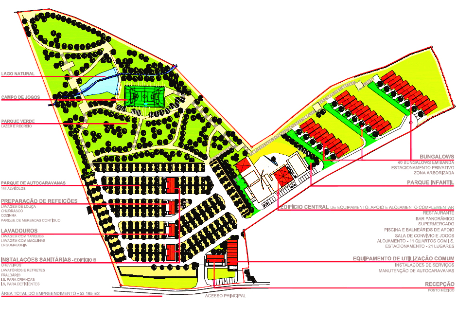 - Edifício de Manutenção, compreendendo instalações de serviço para Autocaravanas, nomeadamente no que diz respeito ao abastecimento de água potável e despejos de águas sujas e manutenção na proporção de uma unidade para cada 30 Autocaravanas.