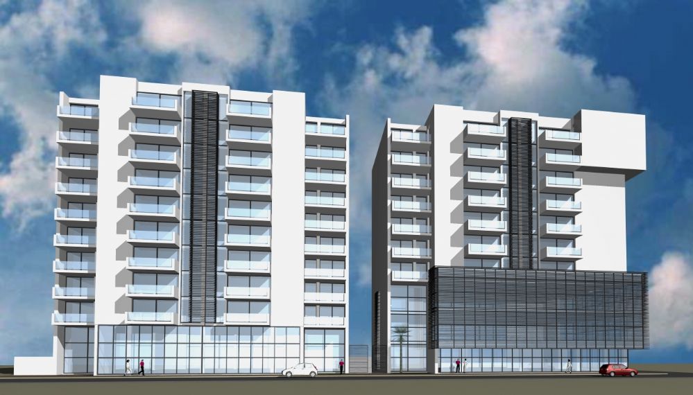 Nos primeiro e segundo pisos de um dos edifícios são propostos escritórios (com núcleo de acesso próprio e separados dos acessos às habitações).