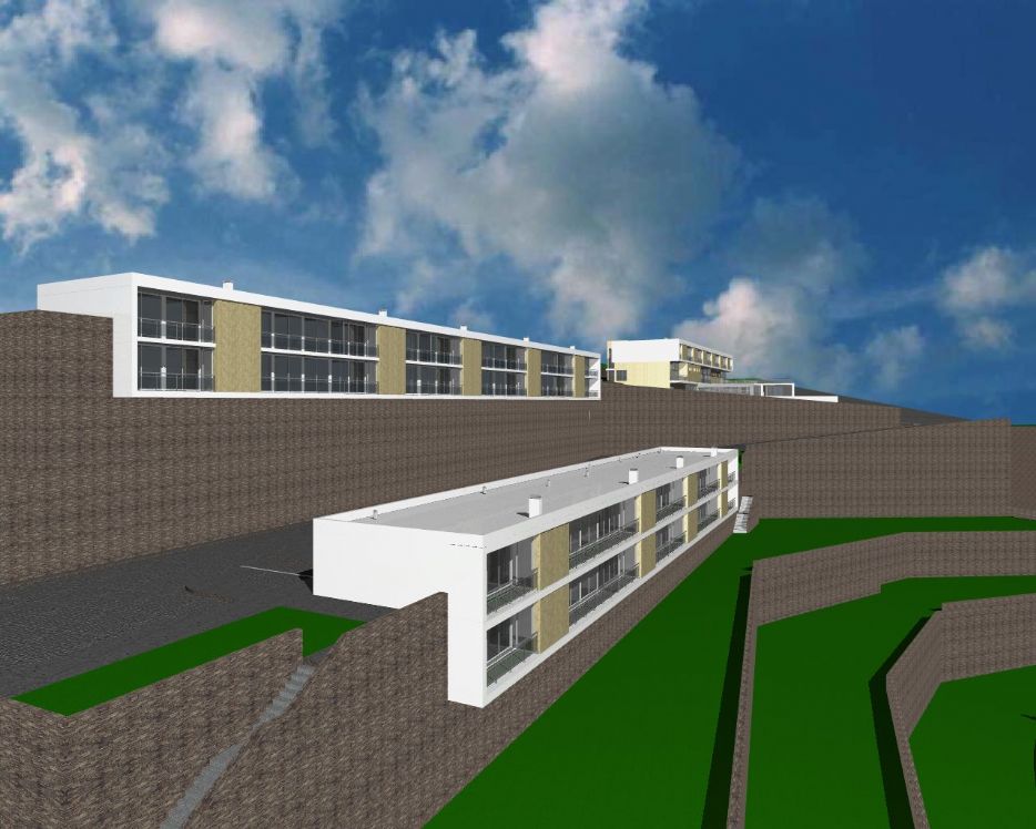 O lote onde será implantado o Aldeamento Turístico *** está inserido em Espaço Florestal, de acordo com a classificação de espaços do PDM. Os volumes construídos consistem em paralelepípedos que se desenvolve nos socalcos existentes no terreno.